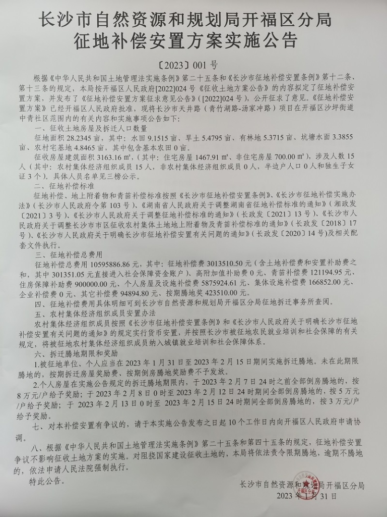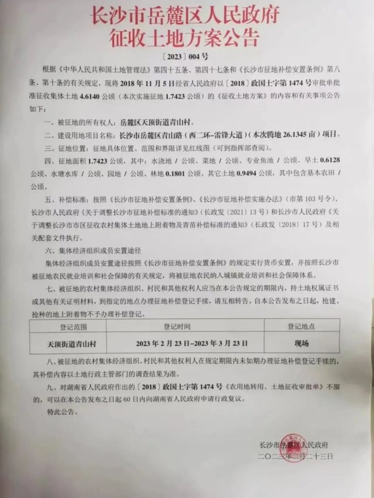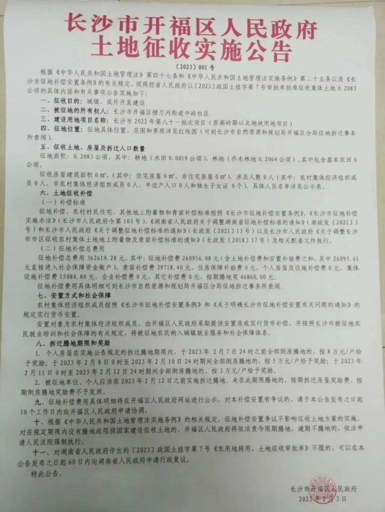 征收范围:开福区秀峰街道湘荷村,青湖街道新太安社区(公告2号地)